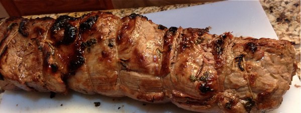 I am the honorary roaster for Christmas dinner so I set off to find a recipe that would work for us.  I found this yummy Bourbon marinade from Paule Deen on food network, but used this other recipe here to roast the meet since I wasn’t interested in standing in the snow to grill.