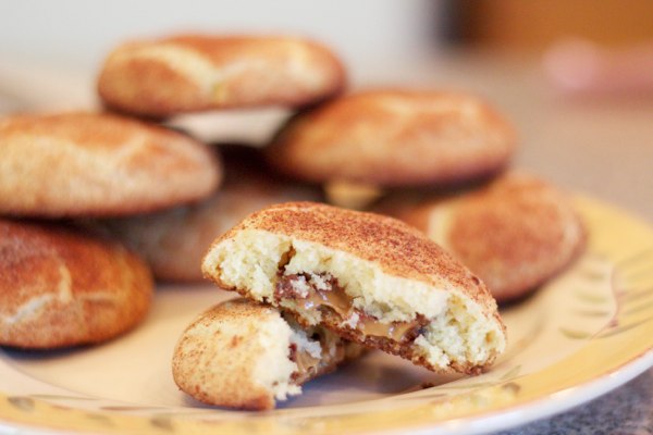 We got WAY to much candy for Easter! I want to eat responsibly, but with all this candy laying around… well, I just can’t. So I decided that I need to get rid of the candy asap! I found the perfect method! Candy bar filled snickerdoodles. I got the idea from thebakerchick.com who filled her snickerdoodle cookies with caramels. If caramels work, why not these easter chocolates?