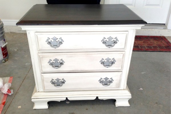 6. After waiting another 24hrs, I used Valsar antiquing glaze to antique the drawers, cabinet doors, and trim. I use the Valspar gel because it is already mixed and ready; no need to add a thing to it. This is really the fun part. Use a foam brush and paint a thin coat over the desired area (I really only focused on the crevices as I wanted it to be a very light antique look), then using a lint free rag, wipe it all off. Some of the glaze will remain giving it an antique look. You really can’t screw this one up since you just keep wiping it off if you want less and repeat it if you want it more heavy. I keep a wet rag nearby also so that I can wipe parts even cleaner if they look smudged.