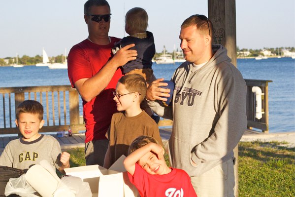 Husband, the balloon maker, did balloons for all the kids when they arrived! They also jumped in the bounce house and played with toys in the basement until everyone arrived and got settled in.