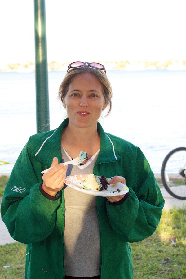 Ella blowing out her candles. Notice her outdoor themed cake. Boo.