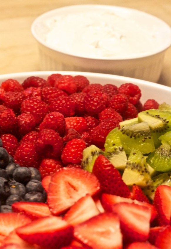 6. Fresh fruit is always a yummy BBQ side. I like to serve mine up with this yummy fruit dip of cream cheese and marshmallow fluff. It really dresses up your fruit. I have been told that this fruit dip is addictive!