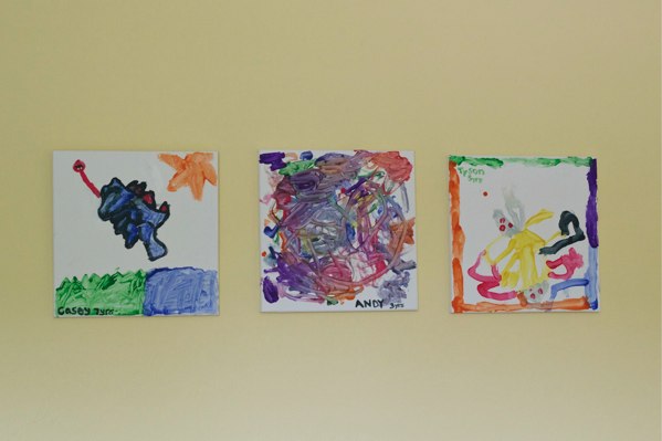 Here are the boys’ creations. I hung them in the toy room. They look great and the boys were excited about having them hung up.