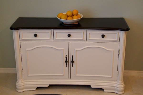 I used a a dark stain called Kona on the top of the buffet. I actually did 3 coats of this stain to get it as dark as I wanted it to be. You can always get it a shade or two lighter using less coats. I also sanded between coats to make sure it was extra smooth.