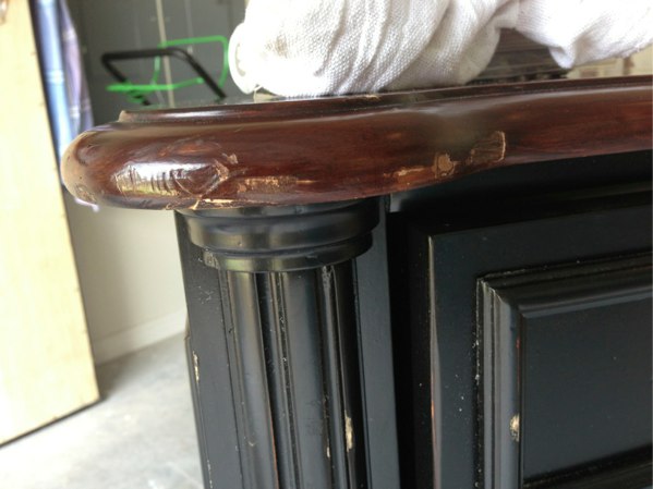 I sold a lot of my stuff before the move, but I always loved this piece. It got really beat up in the move… maybe because we pack all our stuff ourselves, or maybe because it drove from Virginia to Florida in an open trailer secured with ropes and bungee cords. Oops.