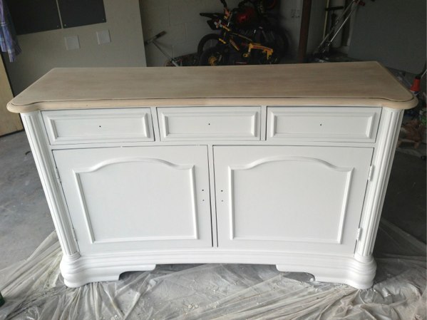 Again, with the beat up furniture from the move! Ha. I am slowly moving from project to project as I get settled in the new house. I got this buffet about 6 years ago. It was one of my first pieces of furniture I was able to buy after graduating from college and getting married.