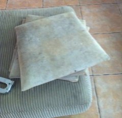 These dining chairs had gotten pretty grubby, but the chairs are solid so we didn’t want to replace the whole set. We decide to see how hard it would be to re-upholster them. As it turned out, this was so easy and cheap to do!