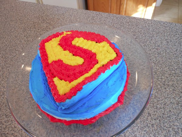 The super villain was defeated and the birthday party was saved. Time for cake! I always make and decorate my own cakes with the birthday boy. It makes it that much more special. This was a super man cake. I also had incredible hulk juice (green sherbet, sprite, and green food coloring – all in a large punch bowl). It was a big hit.