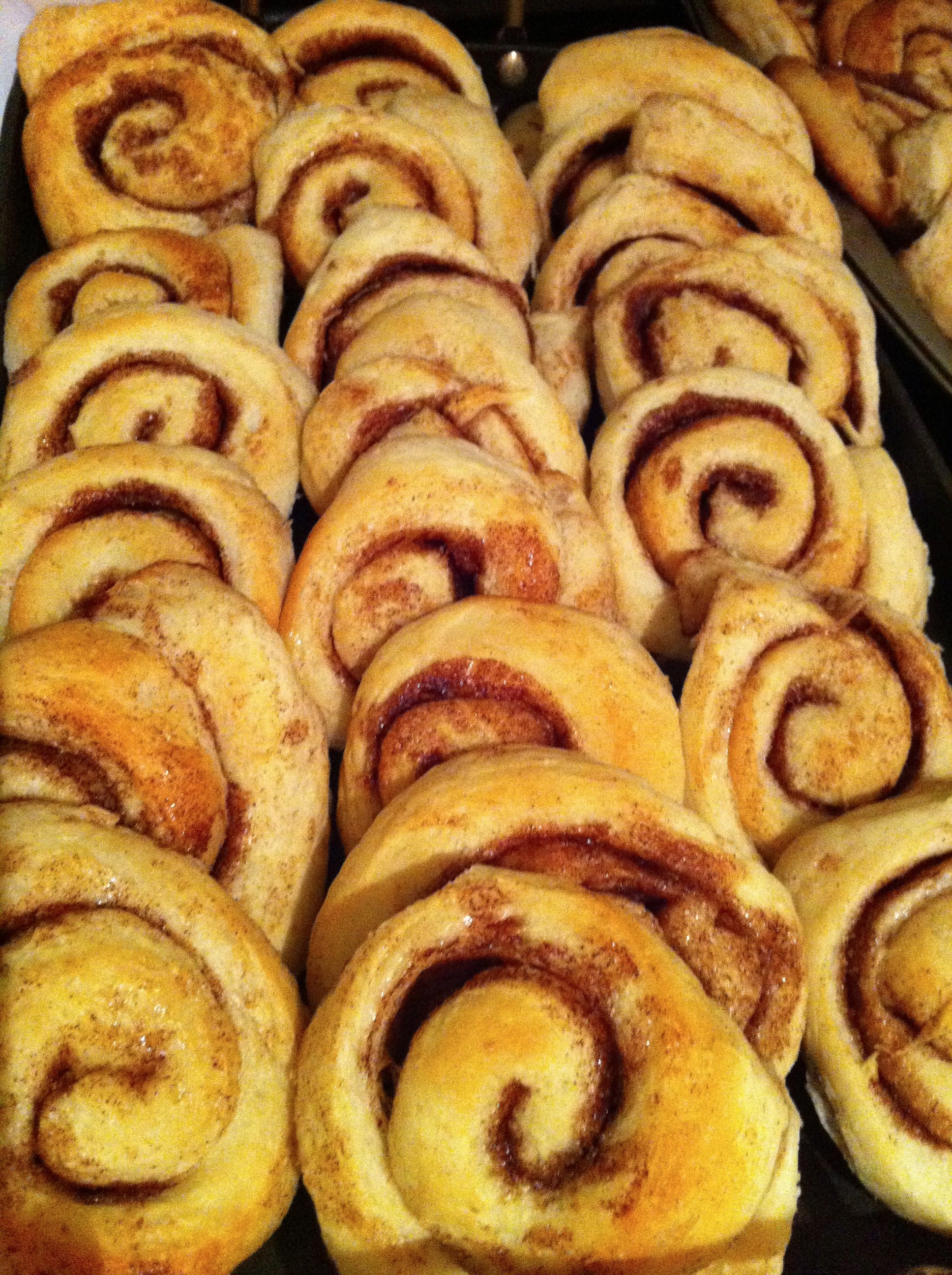 By the way, this recipe makes 4 to 5 trays of cinnamon rolls (48 or so rolls) so if you don’t have a big crowd to feed (with seven kids and all the friends coming in and out we always did!) I would strongly recommend cutting this recipe in half.