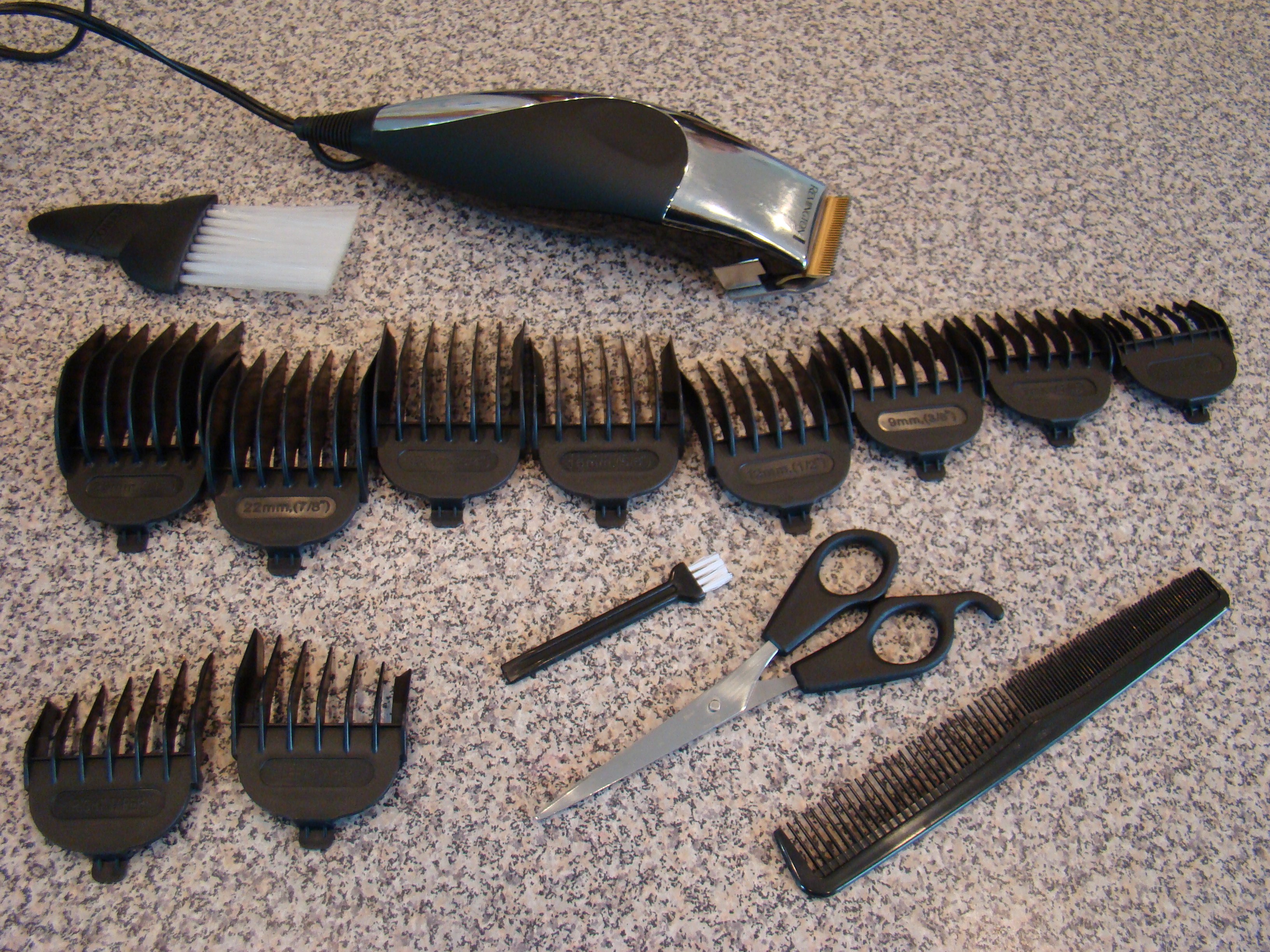 Giving haircuts at home is really easy! I have never been trained to cut hair in anyway, but through practice the last several years I have learned how to cut a decent haircut in just a few simple steps! You don’t even need an expensive fancy set of buzzers. I paid $29 for mine on Amazon.com and it came with all the guides and some scissors.