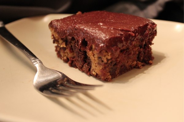 And here it is in all its goodness! It is essentially, chocolate brownies with chocolate chip cookie dough balls, frosted first with fluffy peanut butter frosting and then lathered over with yummy chocolate frosting. Hold on while I wipe the drool from my chin… you might want to do the same! 🙂