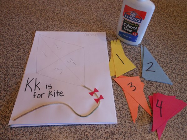 One of the cross curricular activities we did was a kite puzzle. Along, with reinforcing the letter K and its sound, the kids matched the shapes and numbers to make the kite. They also counted the pieces to the kite.