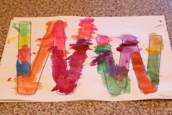 We also let the kids paint W’s with Watercolors. This is a simple, but fun project. It also looks great as a finished project to add to their alphabet books they have been making!