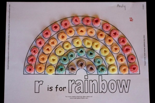 We also made some rainbows out of fruit loops! How cute are these! Click here to download your own rainbow/fruit loop template. I wouldn’t leave your final project out on the counter unsupervised if you have a dog… I made that mistake!!!