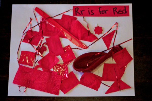 We also read “The Little Red Hen” and “Little Red Riding Hood” during circle time. I had the kids raise their hands every time they heard me say the word RED. Then we made collages out of everything RED we could find!