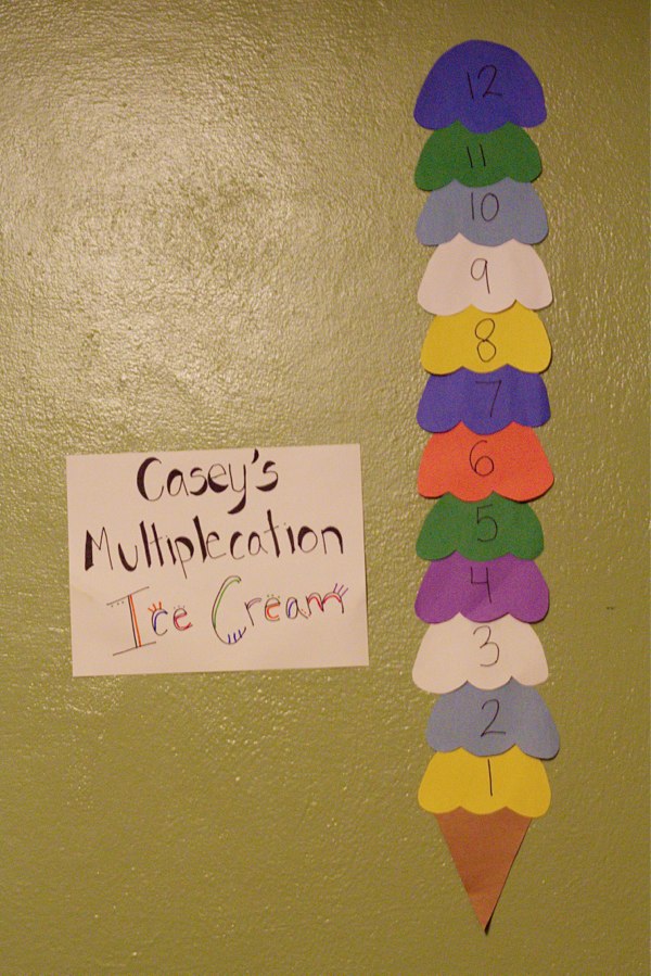 Last November my 2nd grader set a goal to memorize all this multiplication tables. He memorized them in order until he had memorized all the way up to 12! We told him when he started that we would all go out to ice cream once he memorized them all.